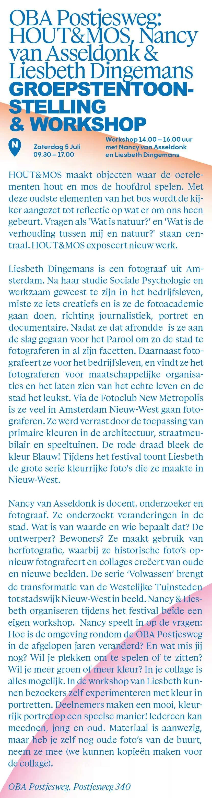 En fotocollages van Nancy van Asseldonk die de groei en bloei van Nieuw-West in beeld brengen. Een workshop maak je eigen collage en breng je buurt in beeld met Nancy.